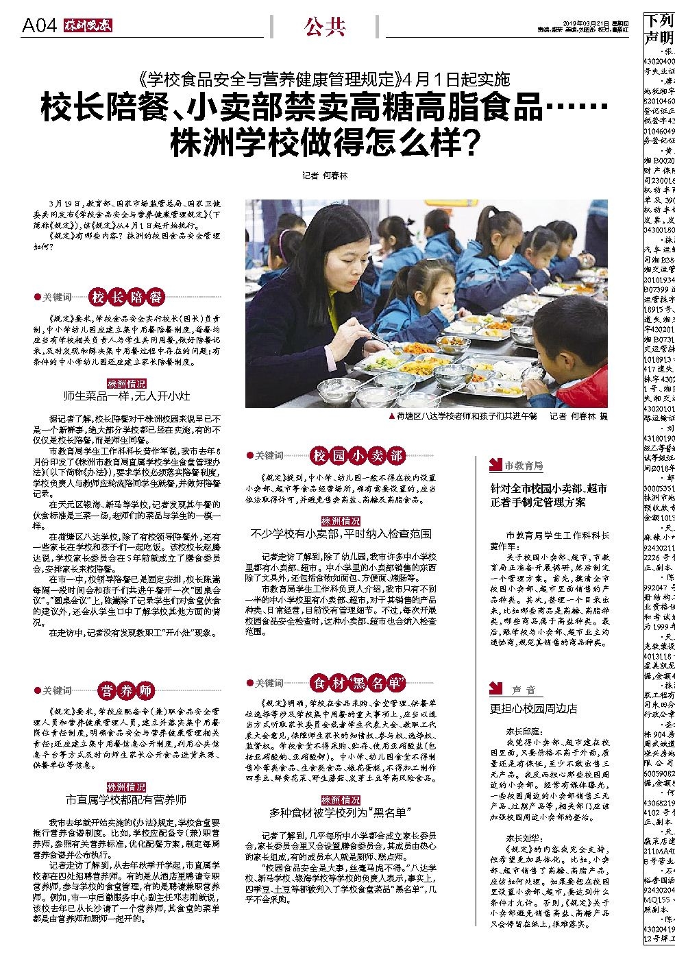 校长陪餐、小卖部禁卖高糖高脂食品…… 株洲学校做得怎么样?