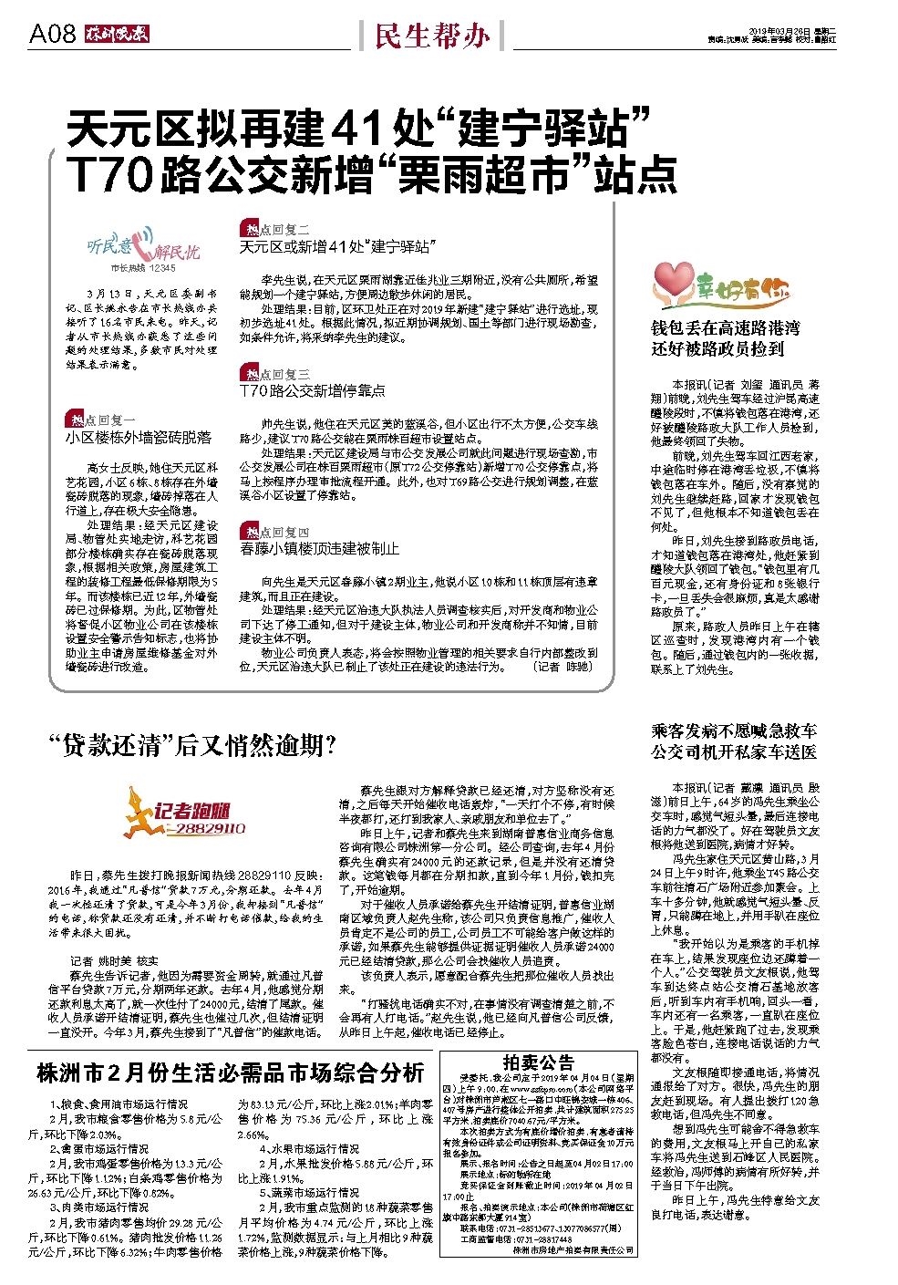 天元区拟再建41处“建宁驿站”T70路公交新增“栗雨超市”站点