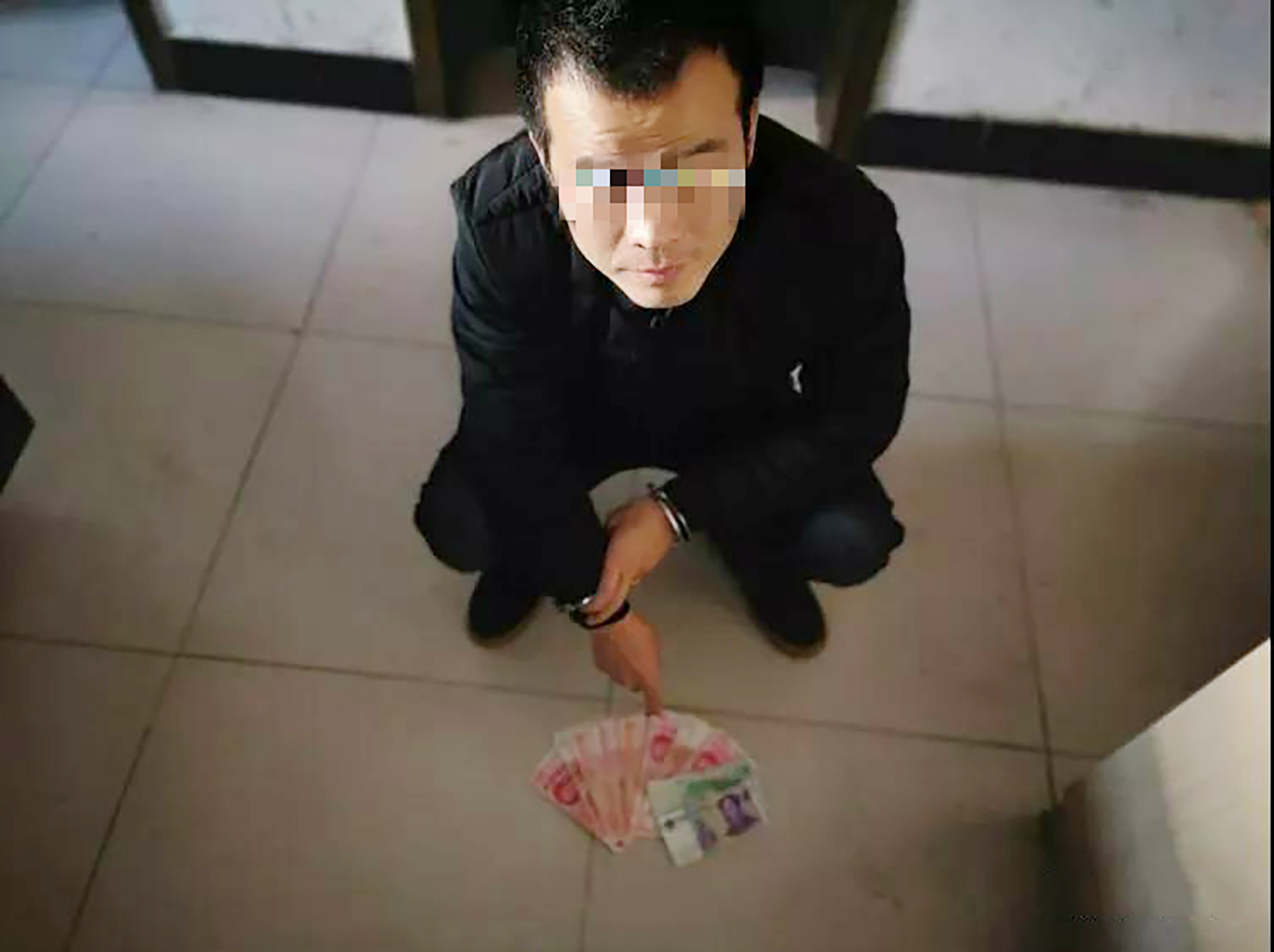 ▲因“买分卖分”被查处的一名违法男子 荷塘公安供图