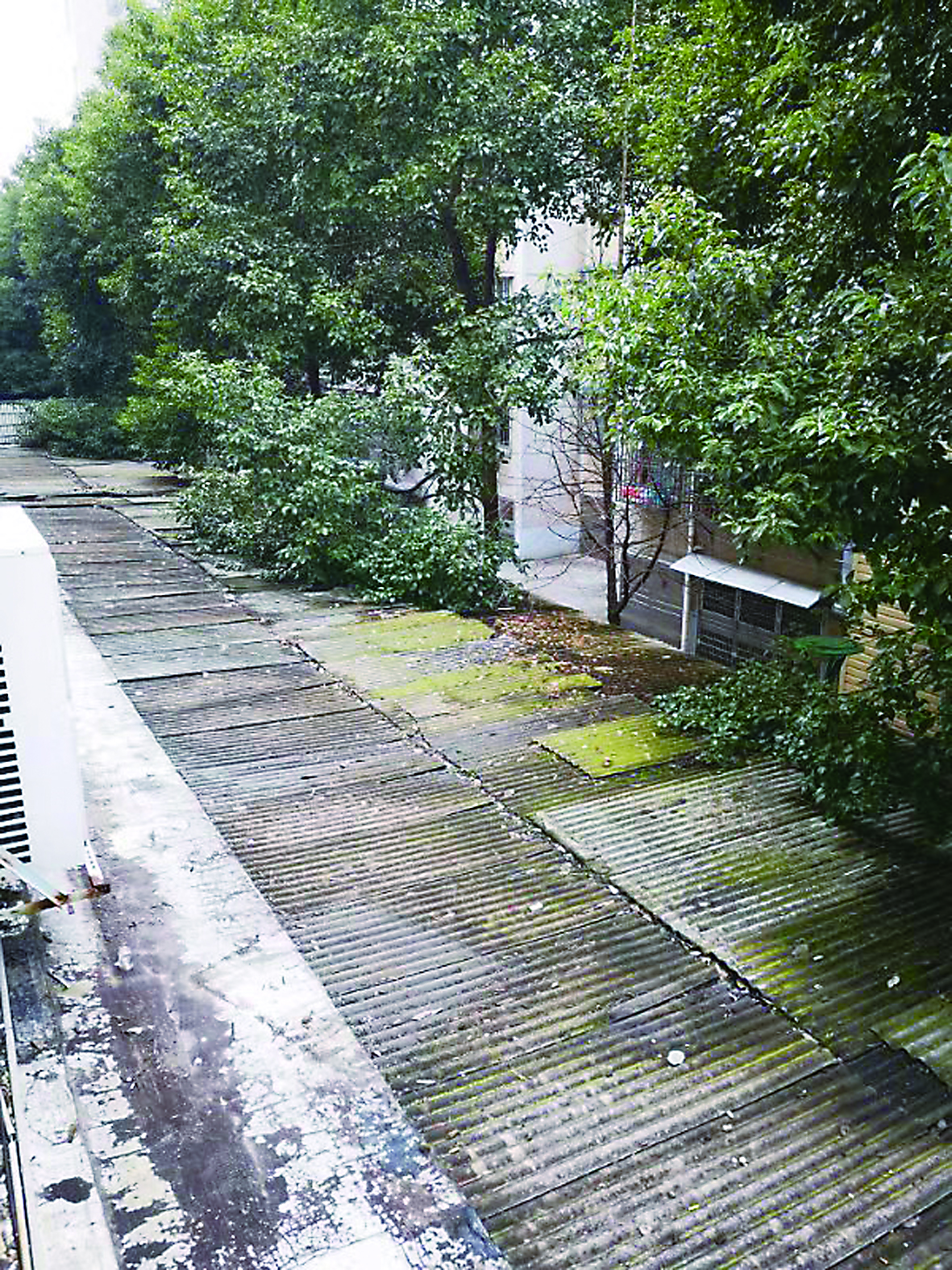 □《推窗见垃圾,老人很心烦》后续 屋顶已清扫干净 老人致电感谢 本报讯(记者 姚时美)家住市财政局大院的宋爹爹反映隔壁院子的石棉瓦屋顶有人丢垃圾,卫生很差(详见本报3月1日A08版)。报道见报后,天元区城管局高度重视,立即将情况反馈到泰山路街道办事处和云里社区,昨日,经街道办事处和社区督促,物业工作人员已经将屋顶清扫干净。 昨日上午,天元区城管局、云里社区先后反馈,经过督促后,物业工作人员已经自行将石棉瓦屋顶的垃圾、树叶清扫干净。投诉人宋爹爹也致电晚报证实了此事,他为相关职能部门的办事效率点赞,并对晚报为老百姓跑腿办实事的务实作风表示感谢。 ◀石棉瓦屋顶已清扫干净 天元区城管局供图