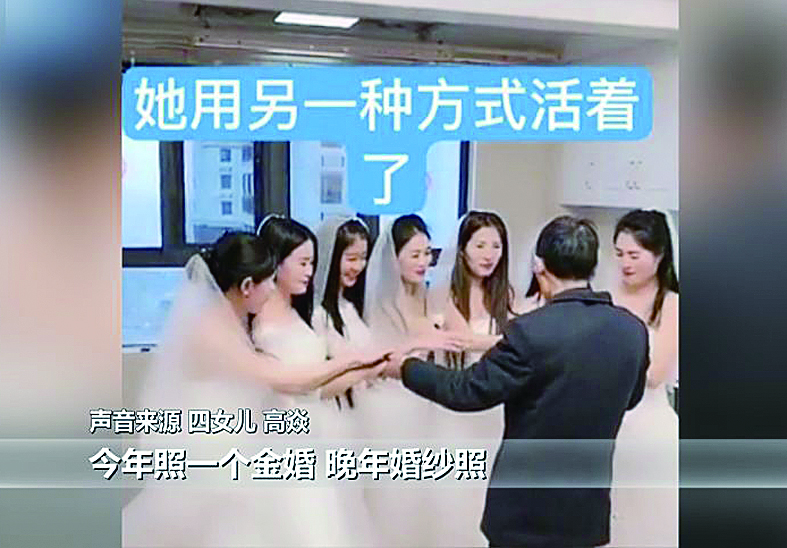 据老人的四女儿高焱介绍,拍摄这段视频是为了完成父母的心愿。她的母亲四个月前查出癌症,已经去世了。