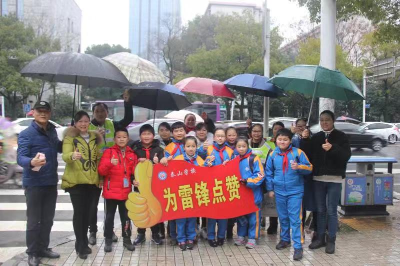 昨日上午,天元区泰山学校学生发展中心进行了“为雷锋点赞”活动,为家长爱心志愿护学岗送姜茶。