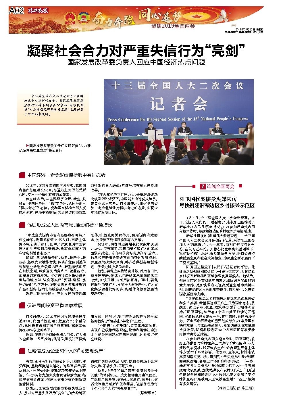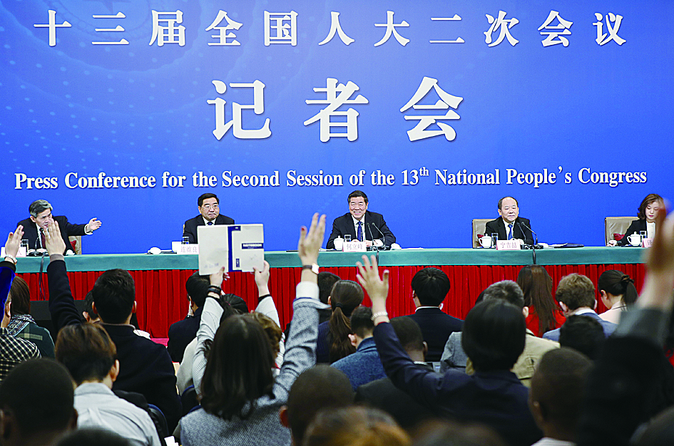十三届全国人大二次会议6日在梅地亚中心举行记者会。国家发展改革委主任何立峰和副主任宁吉喆、连维良围绕“大力推动经济高质量发展”主题回答了中外记者提问。