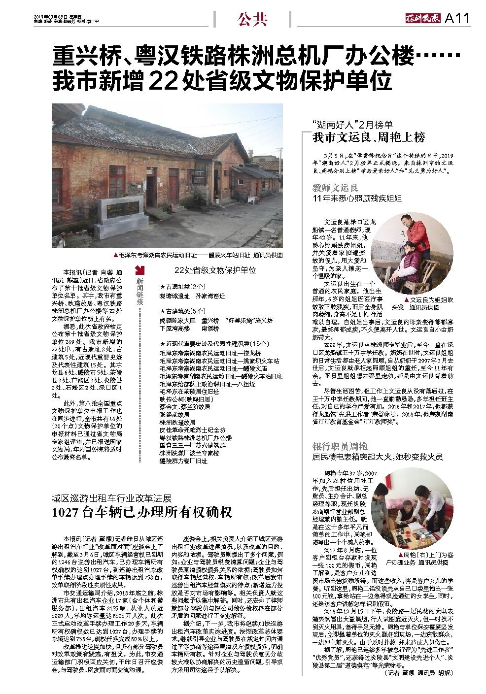 本报讯(记者 肖蓉 通讯员 熊鑫)近日,省政府公布了第十批省级文物保护单位名单。其中,我市有重兴桥、秋瑾故居、粤汉铁路株洲总机厂办公楼等22处文物保护单位榜上有名。