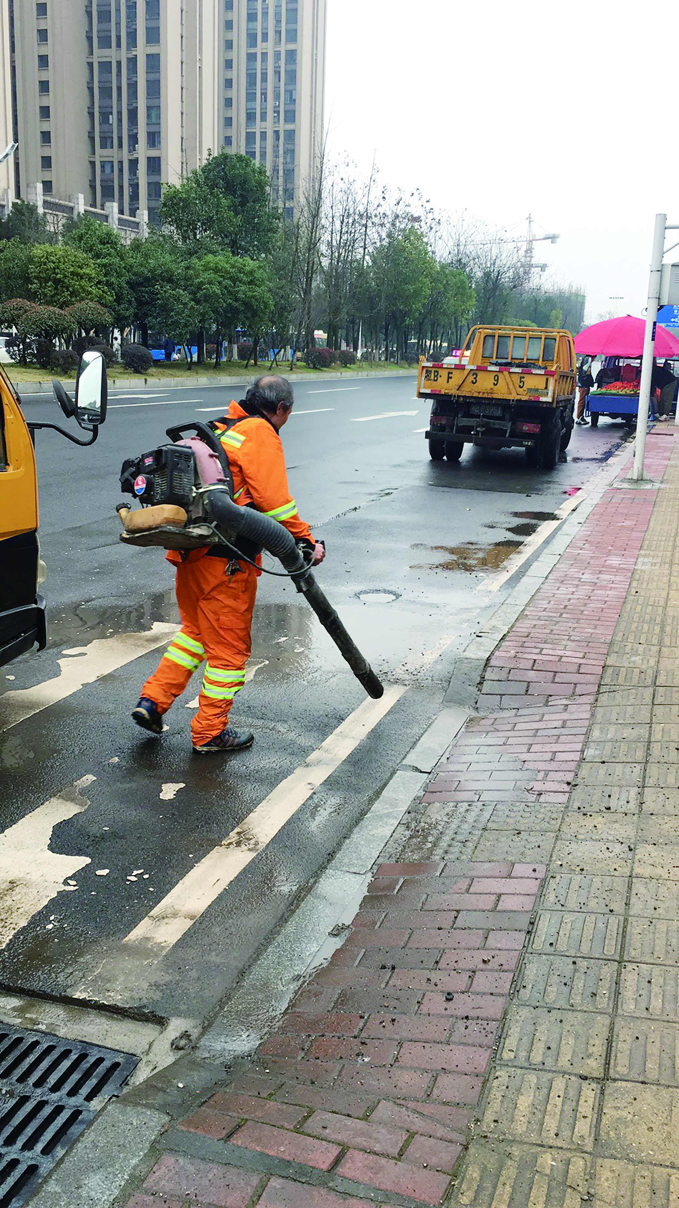 本报讯(记者 伍靖雯 通讯员 刘阳)春来雨急,城市管理工作也一日不能停。最近几天就有市民在长江南路上发现,市政养护队员们修缮道路时,除了常见的维修工具,手里还拿着一个很像“吹风机”的装备。