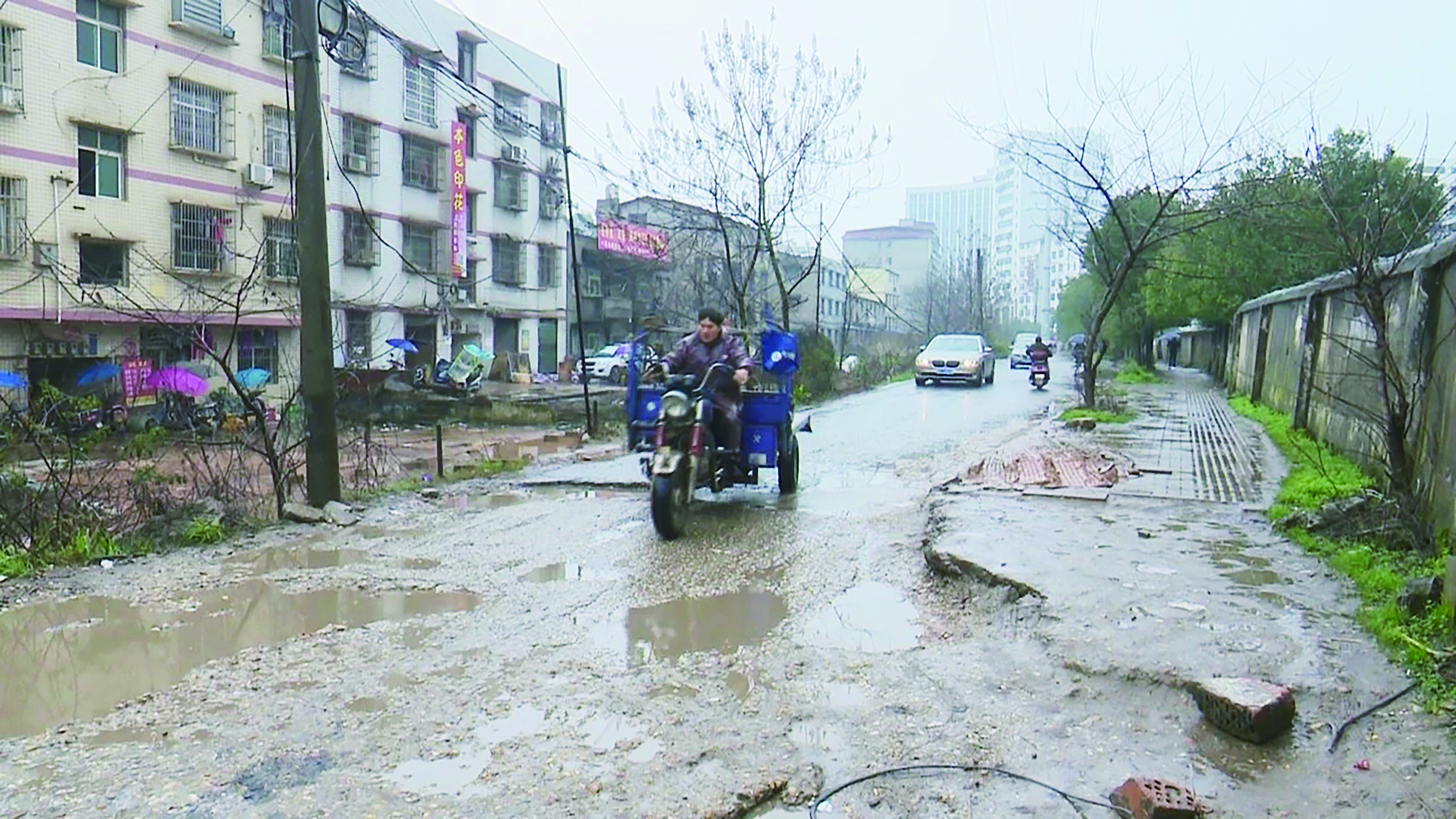 ◀果园路破烂不堪,人车出行困难 记者 陈驰 摄