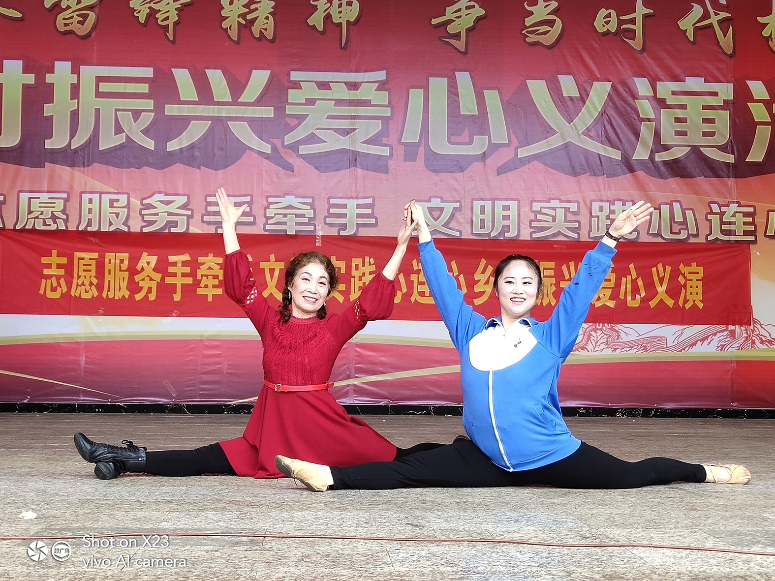 3月5日是全国学雷锋日,周玉萍与文艺团的伙伴再次踏上了下乡演出的路途。这次她们去到的是茶陵县洣江乡欧江村,参加乡村振兴爱心义演。整齐着装,化妆、登台演出、扶贫助残送去慰问物资……周玉萍已经记不清楚这是第几次参与这样的演出了。“每次演出都会有不同的收获,能够带来欢乐,帮助到别人,更让我明白了这份事业的意义”。