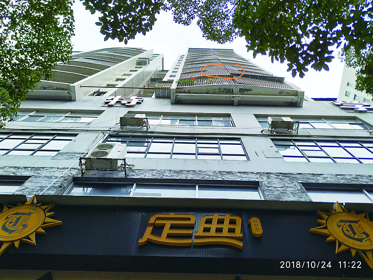 砸中彭华的水泥块,位于佳和大厦北面西侧六楼与七楼之间,上下共有4户住宅。