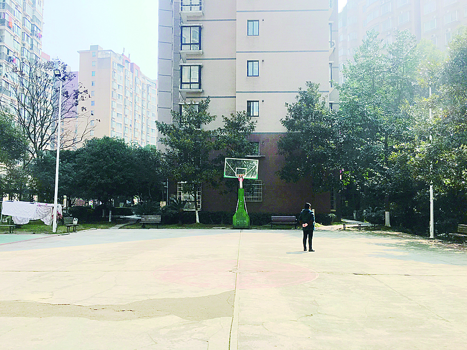 ▲湘银小区的篮球场与住宅楼很近,居民与之和谐相处 记者 戴凛 摄