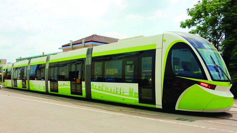 这款有轨电车,车头酷似海豚,下方挡板勾画出“海豚”微笑。活力绿的色彩装饰,搭配动感的城市风景贴图,洋溢着满满的时尚感。五模块的五节车身,短而灵活,转弯半径小,在城市复杂的建筑群中具有很强的适应能力。100%低地板技术,使得该车客室地板距地面仅35厘米,方便老幼病残孕等人群上下车。