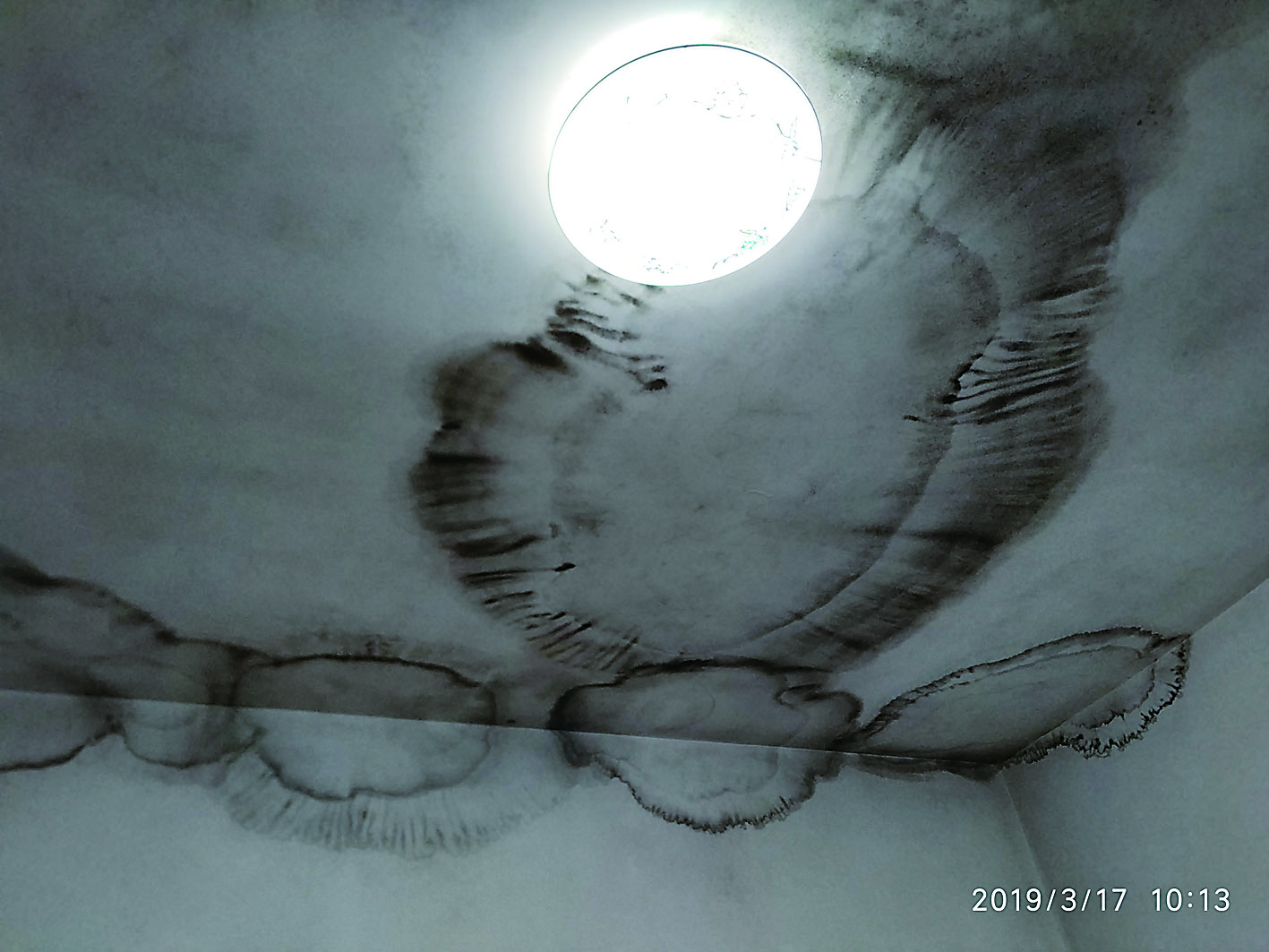 龙女士说,她多次找六楼业主刘先生和小区物业公司,希望能解决渗水问题,但是两方都不愿意出面。