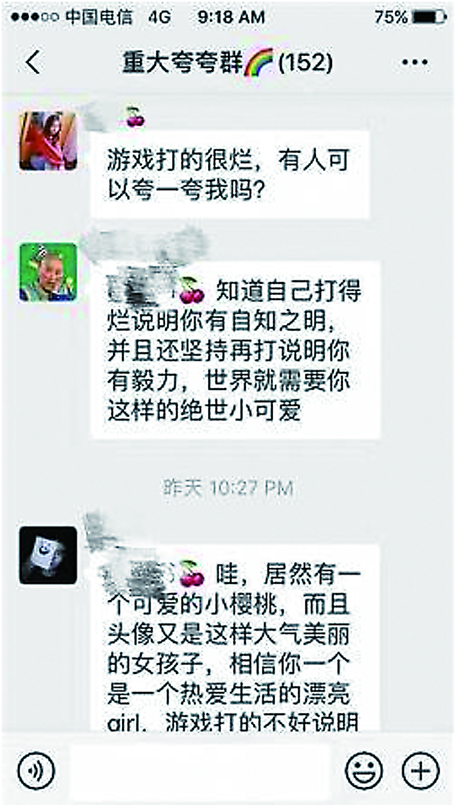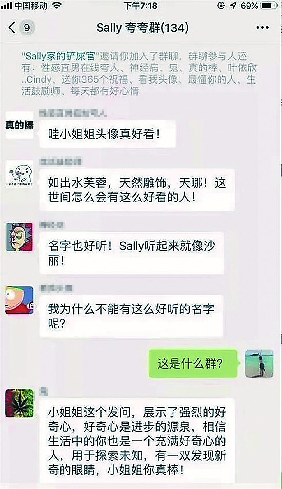 广告学专业大三的学生沈添(化名)说,“群友的夸赞都太有趣了,我现在每天靠夸夸群减压。”