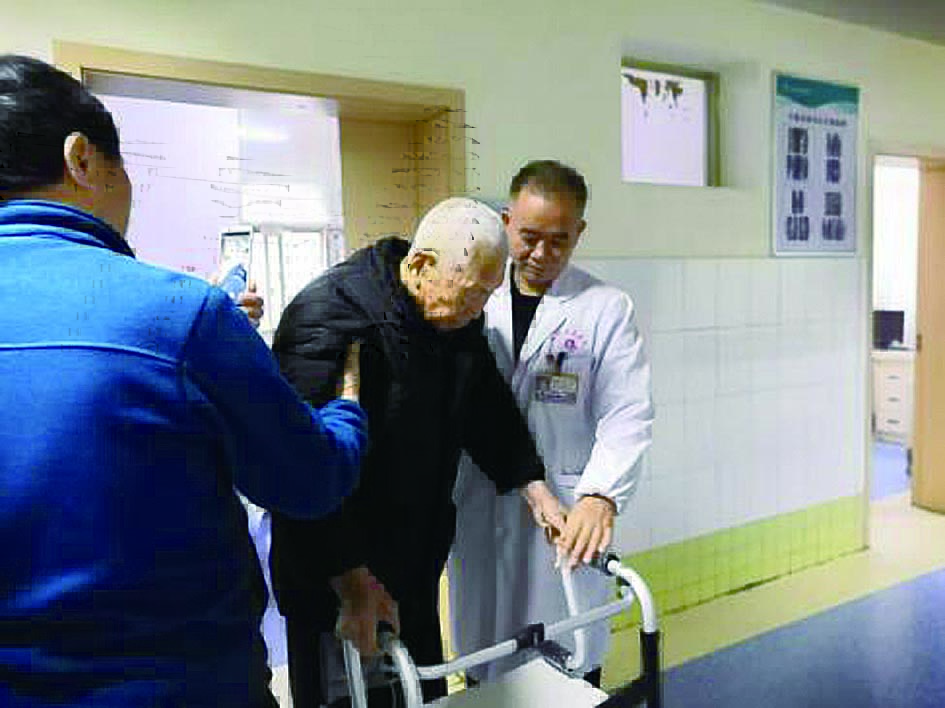 ▲术后5天,言爷爷借助助行器下床行走
