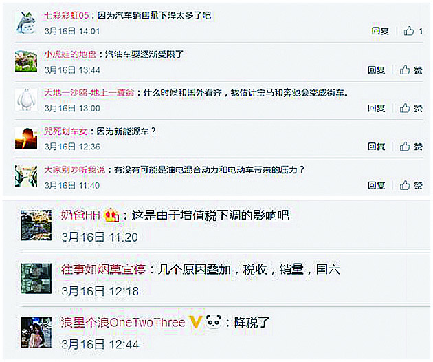 也有网友持反对意见,认为“能促进一下消费挺好的”“刚准备买”“果断换车”……