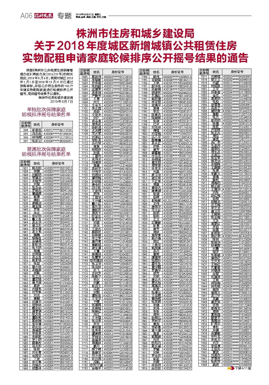 株洲市住房和城乡建设局 关于2018年度城区新增城镇公共租赁住房 实物配租申请家庭轮候排序公开摇号结果的通告