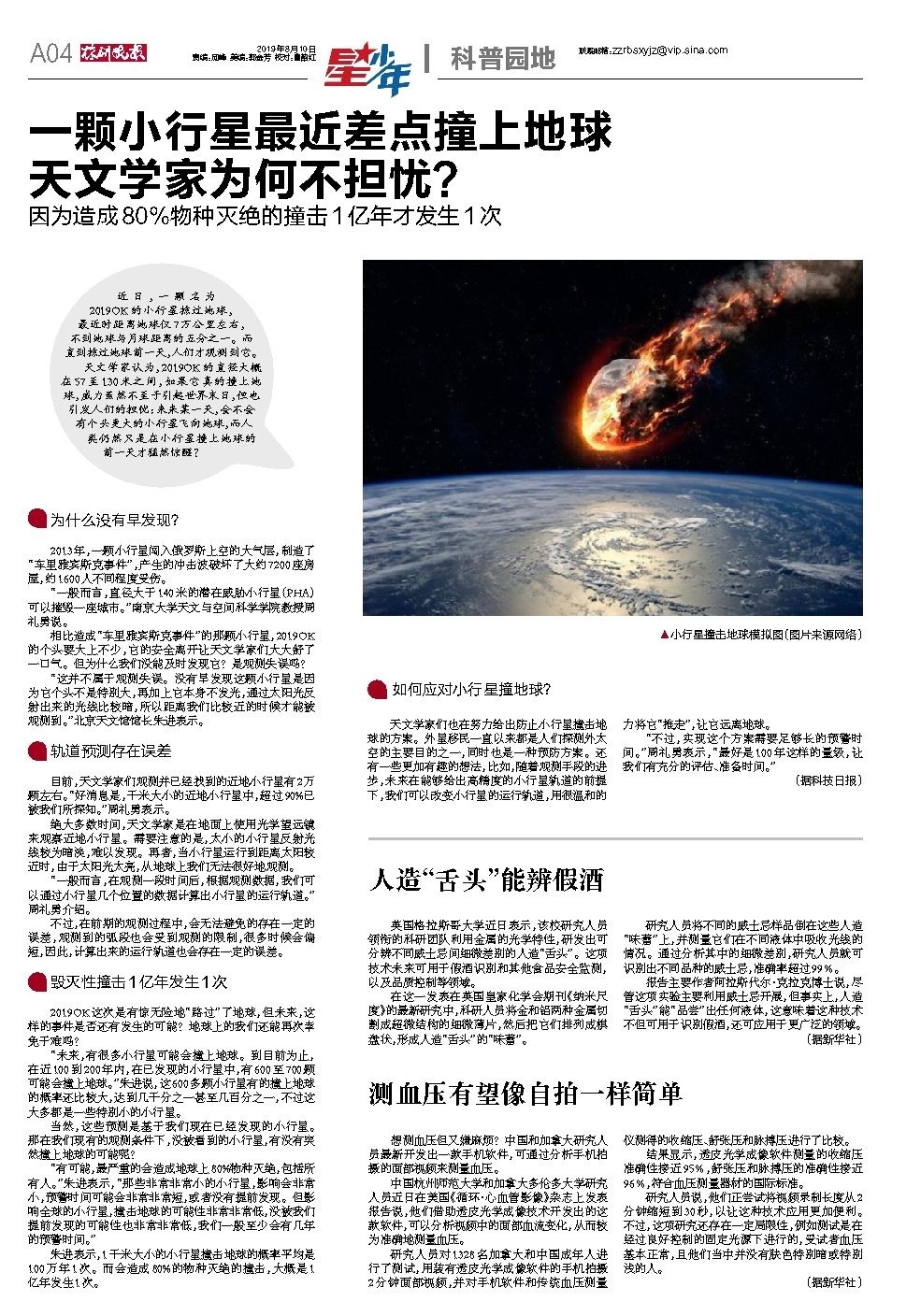 一颗小行星最近差点撞上地球 天文学家为何不担忧?