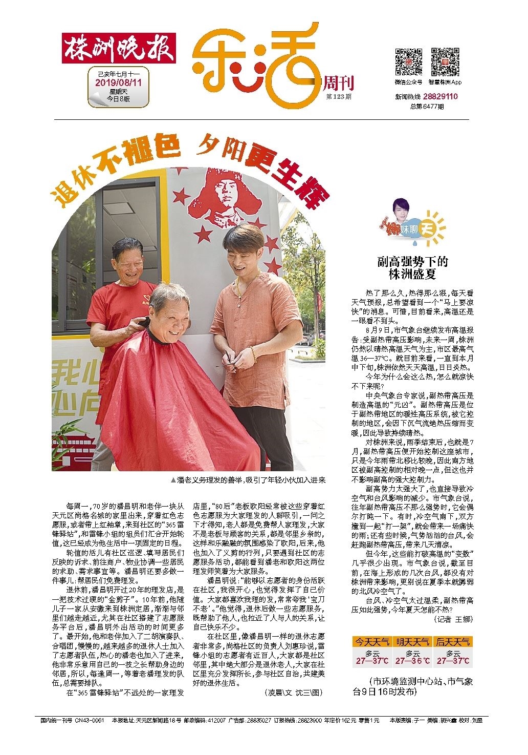 ▲潘老义务理发的善举,吸引了年轻小伙加入进来