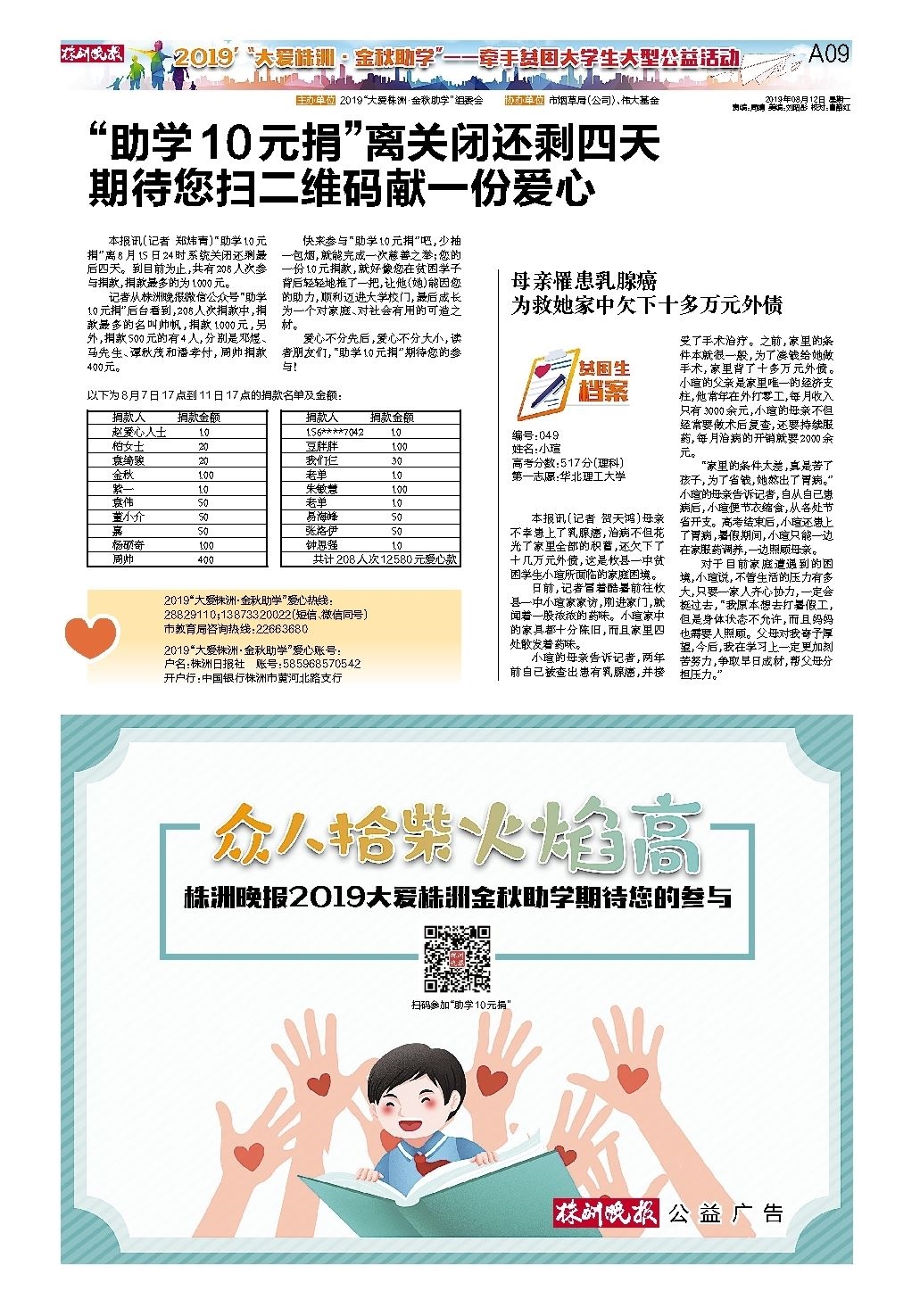 “助学10元捐”离关闭还剩四天期待您扫二维码献一份爱心