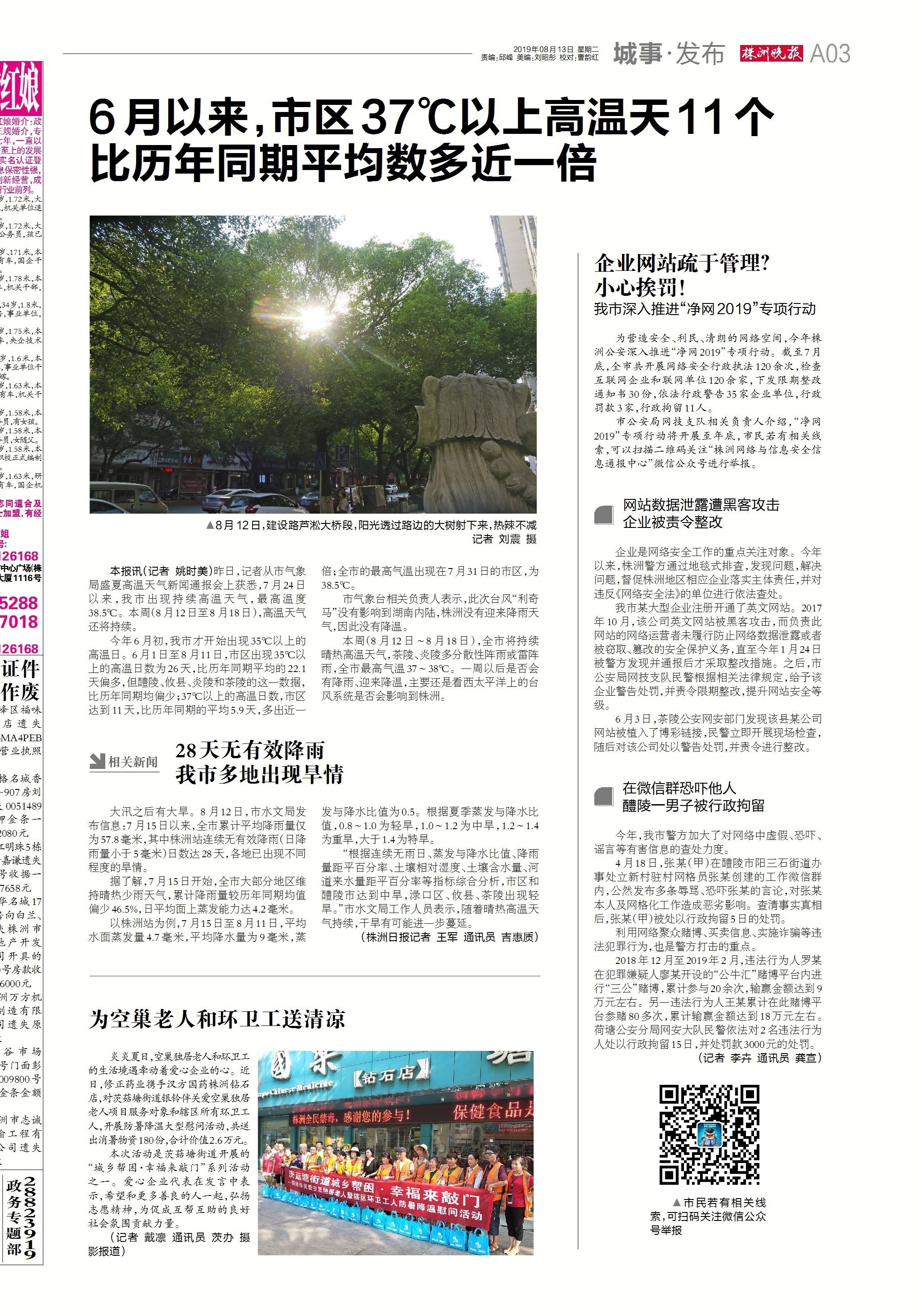 6月以来,市区37℃以上高温天11个 比历年同期平均数多近一倍