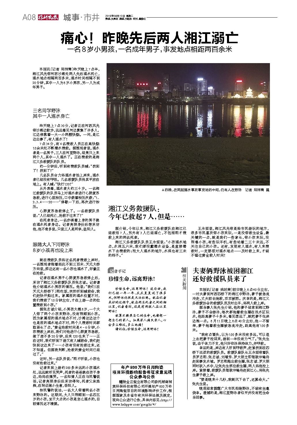 痛心!昨晚先后两人湘江溺亡