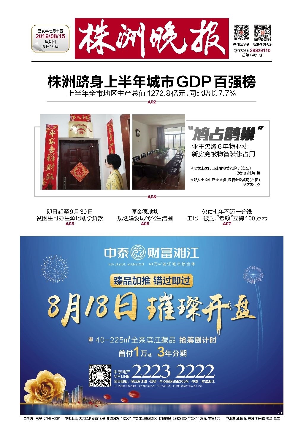 2019年08月15日《株洲晚报》
