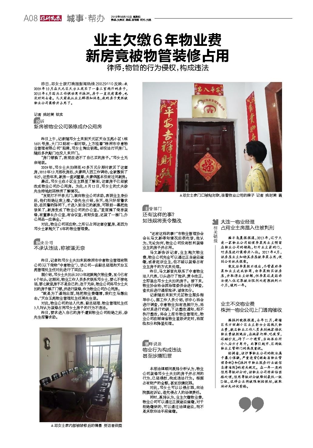 业主欠缴6年物业费 新房竟被物管装修占用