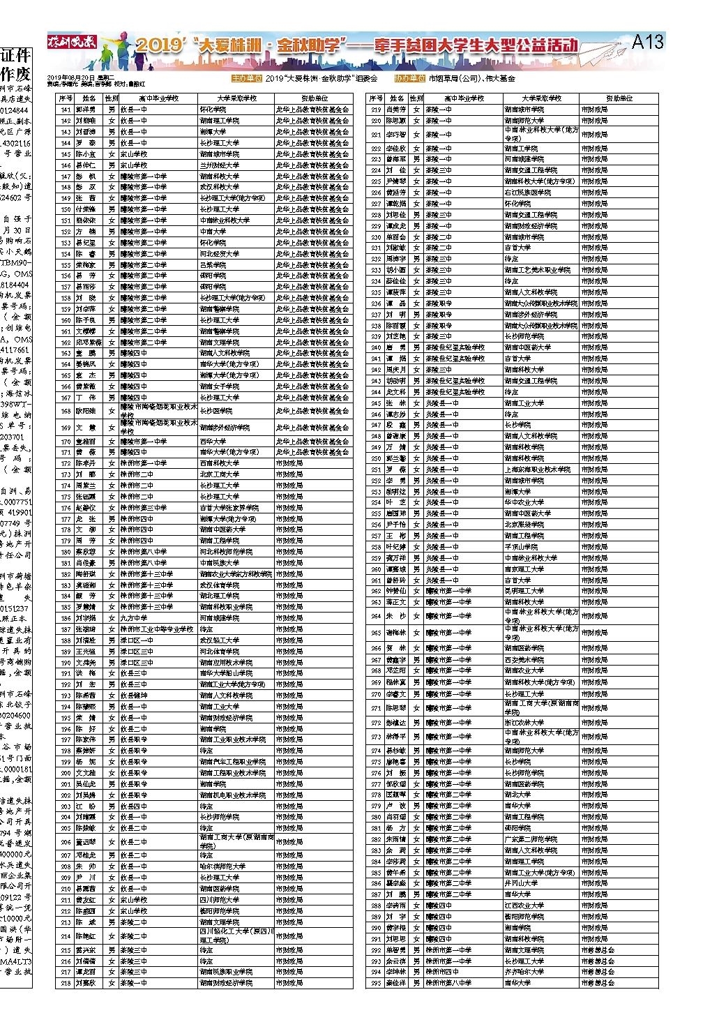 序号姓名性别高中毕业学校大学录取学校资助单位