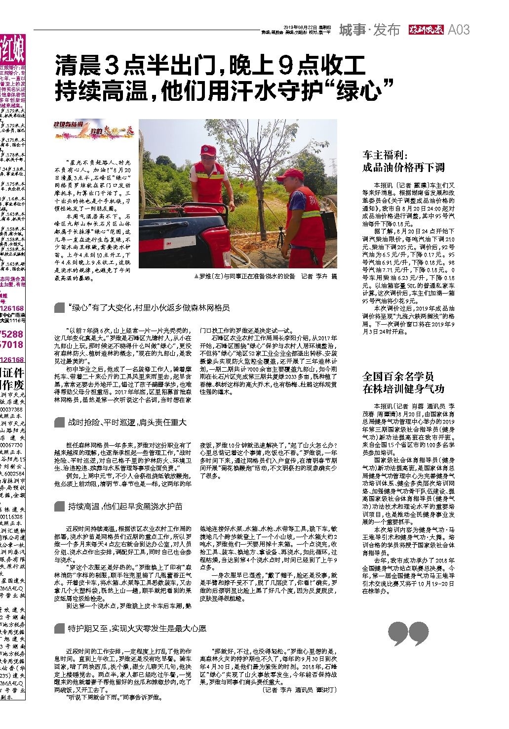 清晨3点半出门,晚上9点收工持续高温,他们用汗水守护“绿心”
