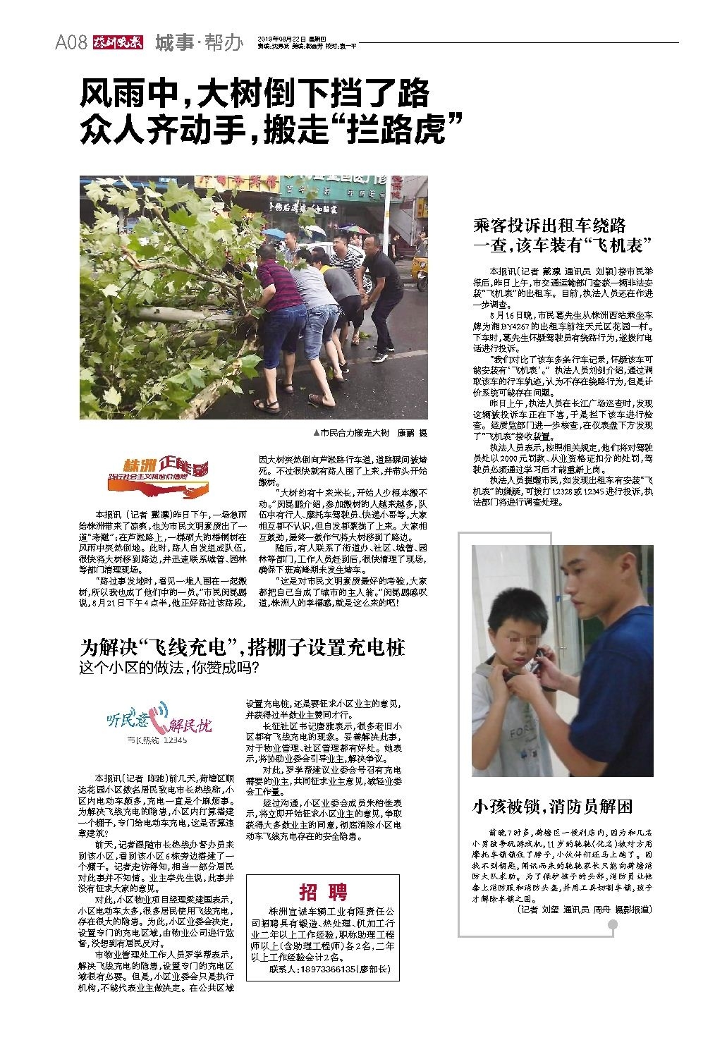 风雨中,大树倒下挡了路众人齐动手,搬走“拦路虎”