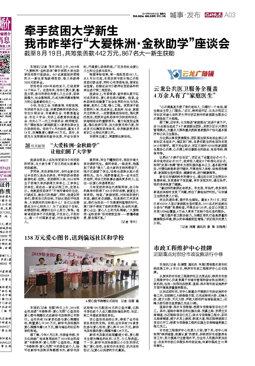 牵手贫困大学新生我市昨举行“大爱株洲·金秋助学”座谈会