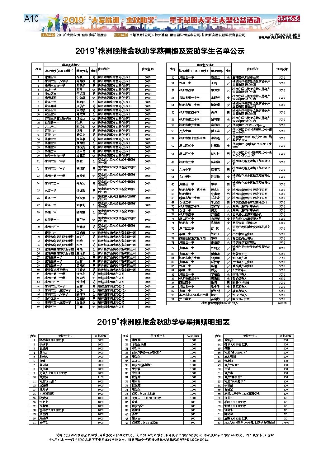 2019’株洲晚报金秋助学慈善榜及资助学生名单公示