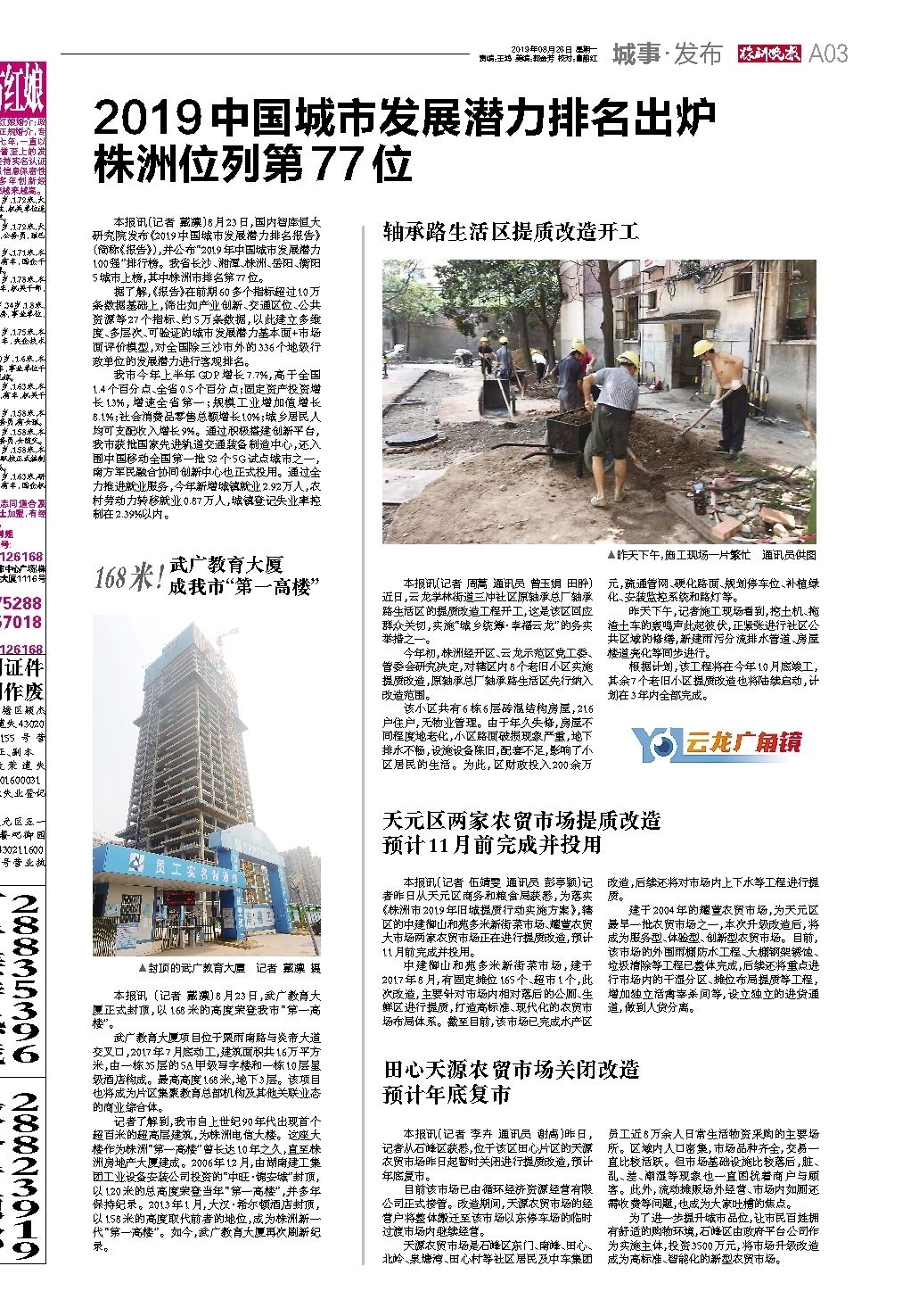 2019中国城市发展潜力排名出炉 株洲位列第77位
