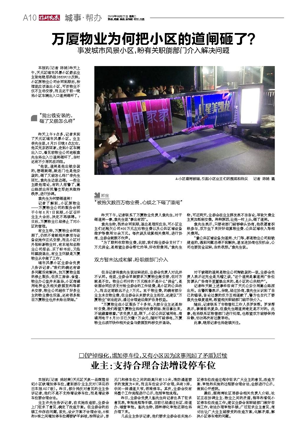 万厦物业为何把小区的道闸砸了?