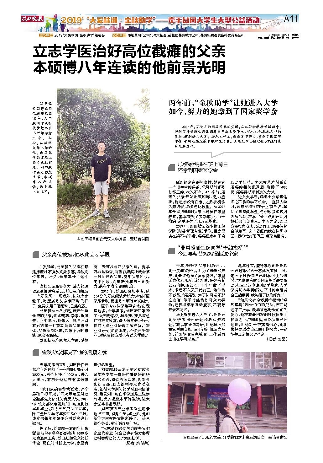 两年前,“金秋助学”让她进入大学 如今,努力的她拿到了国家奖学金