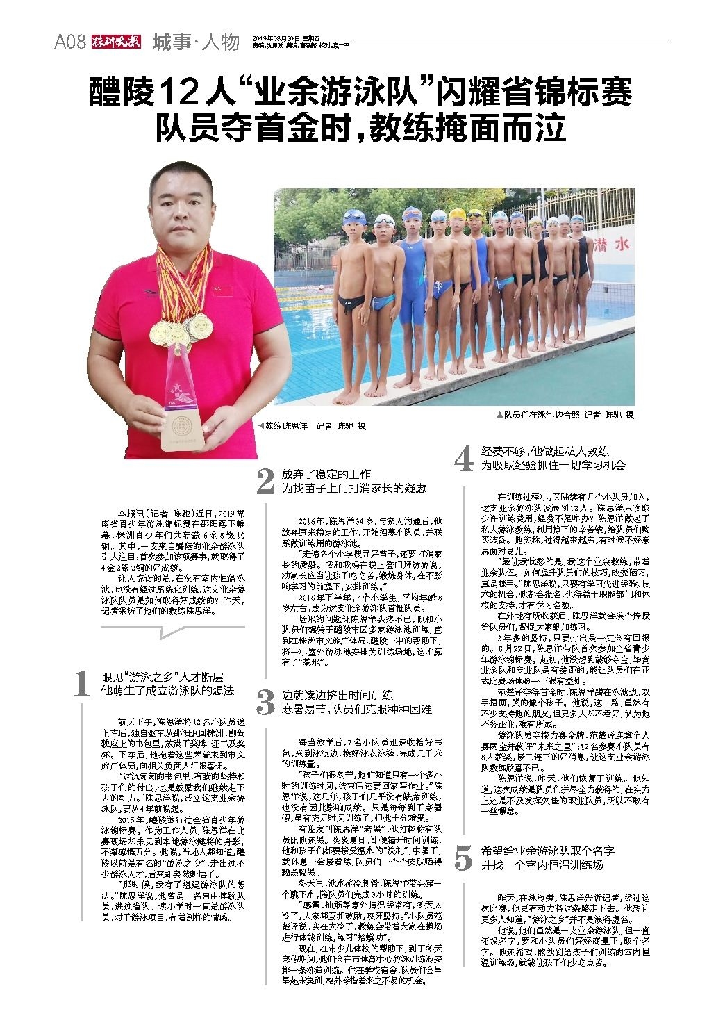 醴陵12人“业余游泳队”闪耀省锦标赛队员夺首金时,教练掩面而泣