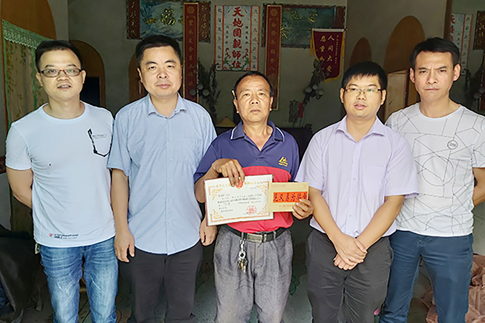 ▲凌福连(中)拿到见义勇为荣誉证书 通讯员供图