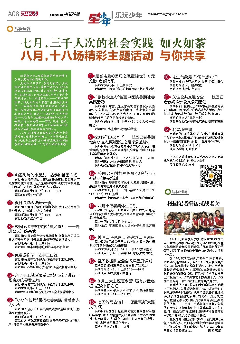 8月1日,来自景炎学校、景弘中学、株洲市第五中学等学校的6名校园记者在株洲晚报星少年周刊记者和校园记者俱乐部辅导老师的带领下,来到了抗日老战士张庆功的家中,进行慰问采访。
