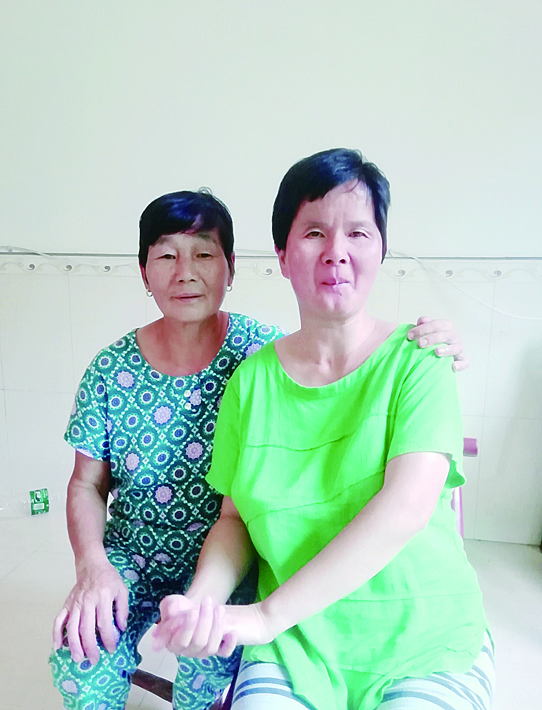▲合影时,郑伍华(左)仍习惯性地搂着儿媳毛庆年 记者 戴凛 摄