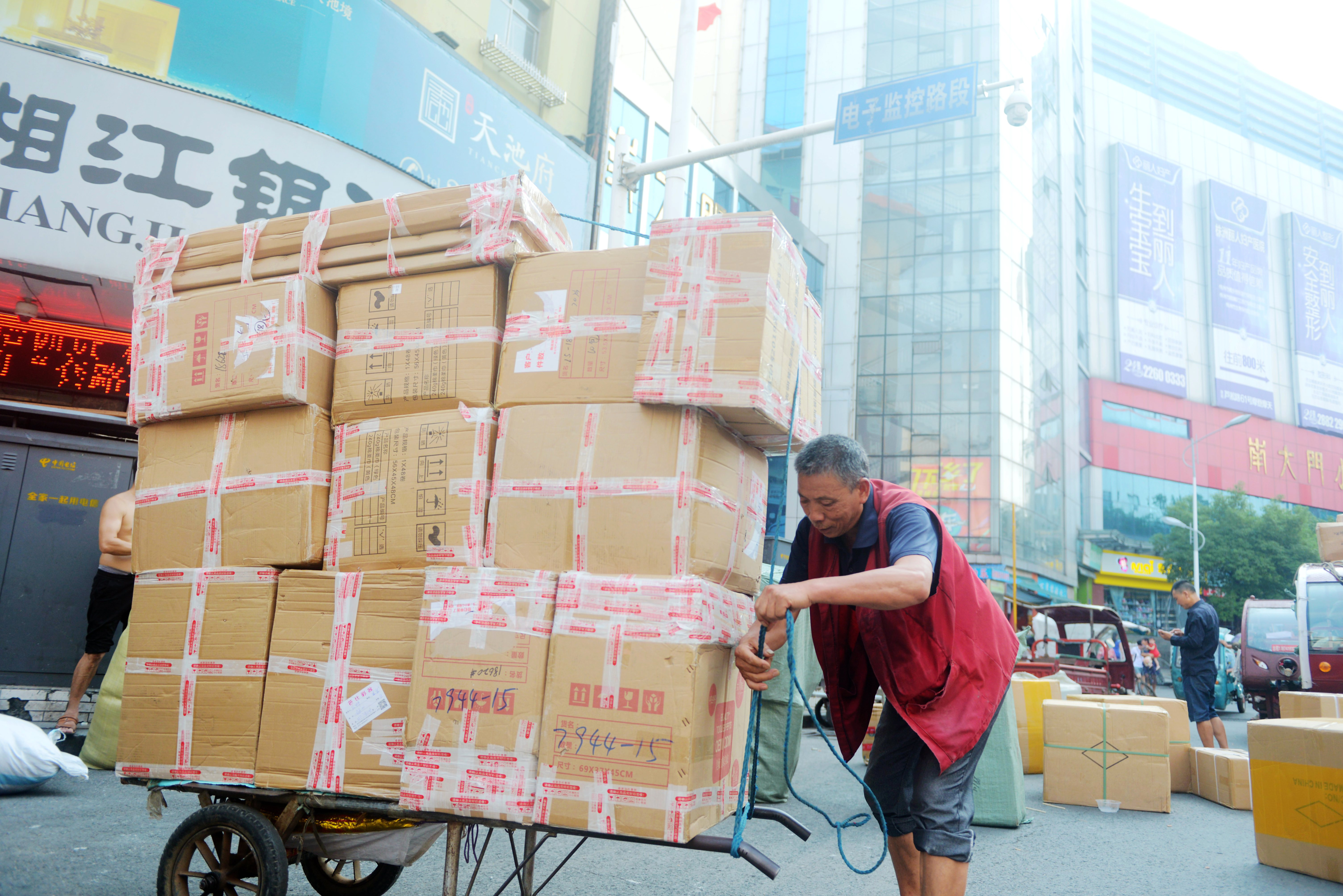 “一开始会尽量挑选目的地更近一些的货,这样才能节省时间多跑几趟。”张运春没来得及和记者多说几句,简单地将货物归类后,又马上搬运上自己的板车,开始第二轮送货。
