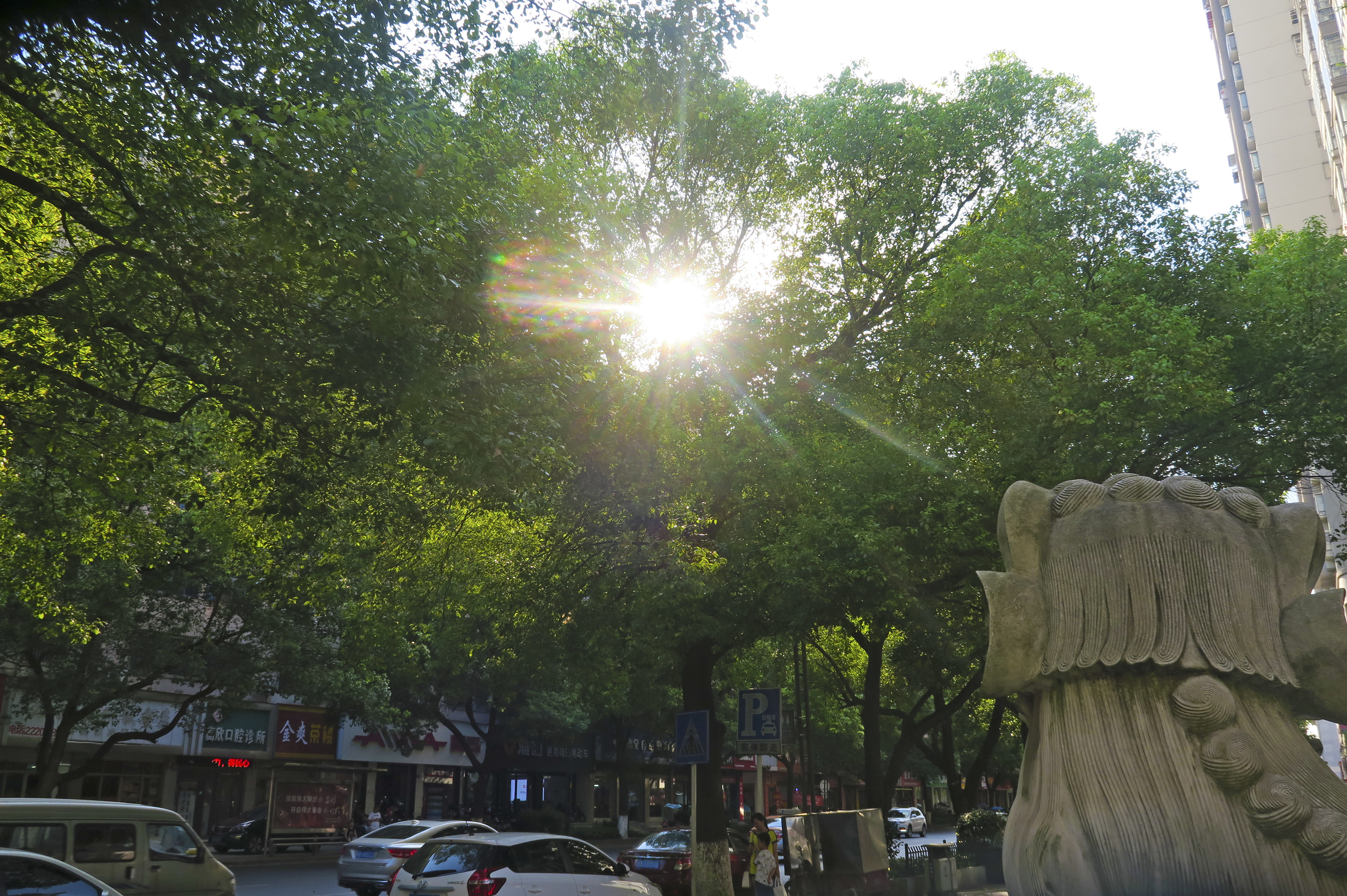 ▲8月12日,建设路芦淞大桥段,阳光透过路边的大树射下来,热辣不减