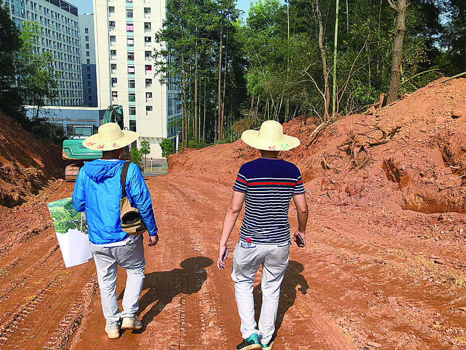 一个小时不到,三个人的衣服都被汗水浸湿。转个弯,前方出现一条土路直通山上,雷磊一路小跑爬上山坡顶,汗水模糊了双眼,他顾不上歇脚,抬手一抹,开始仔细对照地图上的图斑标记。