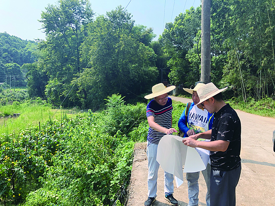 上午8点半,工作组到达白关村,烈日如火,三人下车戴着草帽拿着地图,沿着马路仔细核查。水塘、水田、旱地、建设用地……地图上的每一块图斑所标注的信息是否真实准确,都需要详细对照甄别,遇到有错漏的,马上修正,回去再整改。