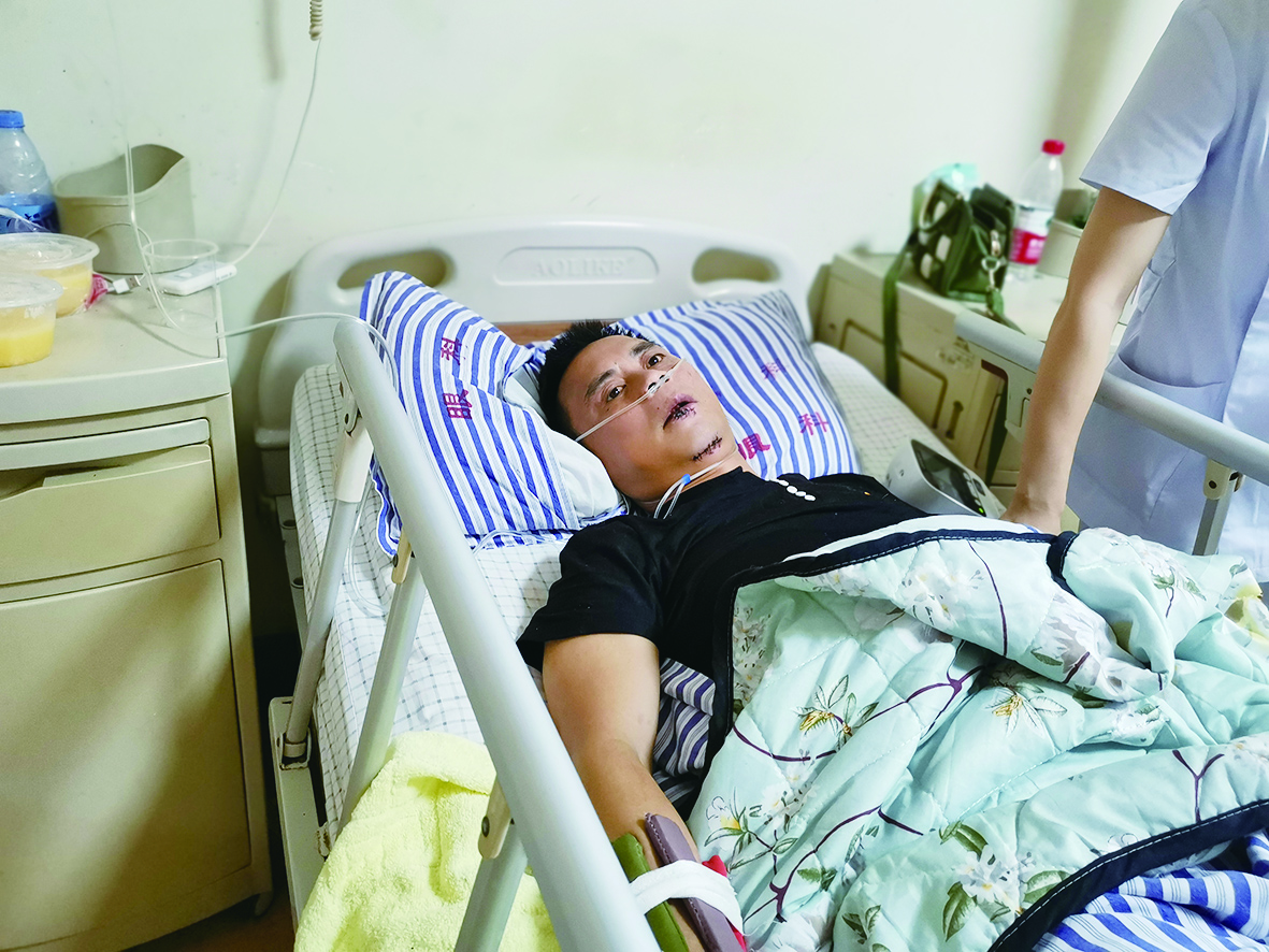 ▲杨先生正在医院接受治疗 记者 姚时美 摄
