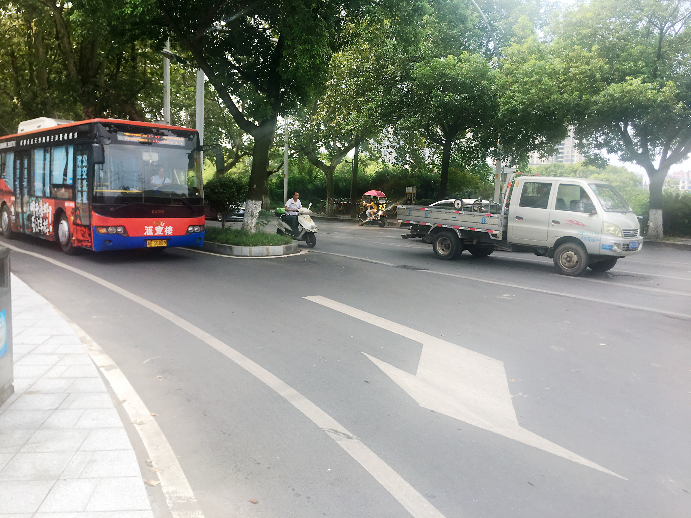 ▲人民路新增了一条右转车道 记者 戴凛 摄