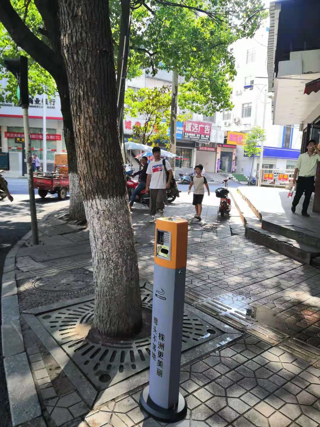 上周起,荷塘区红旗广场至金钩山路沿线,30个印有“烟头不落地,株洲更美丽”标语的灭烟桩“上岗”。