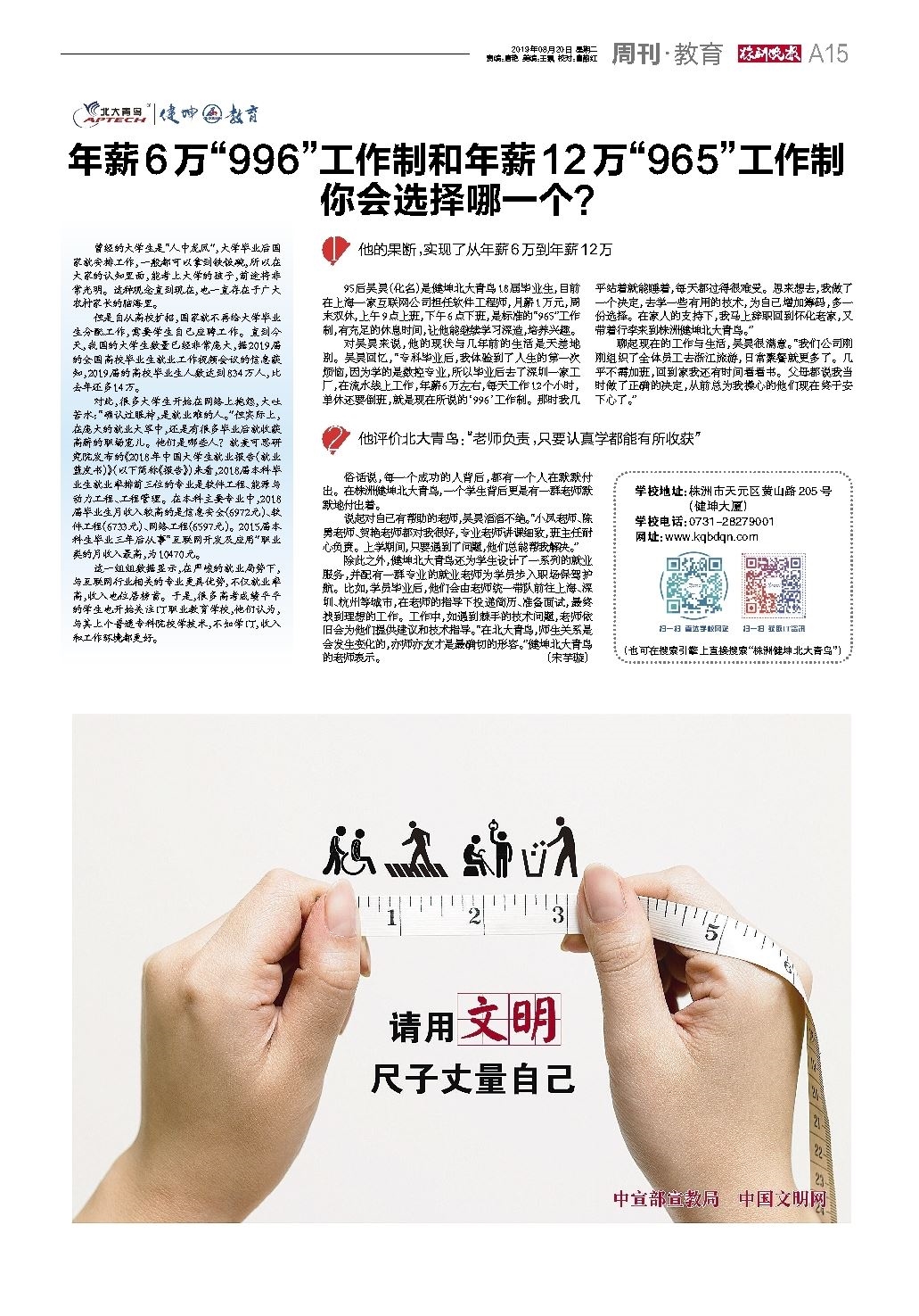 聊起现在的工作与生活,吴昊很满意。“我们公司刚刚组织了全体员工去浙江旅游,日常聚餐就更多了。几乎不需加班,回到家我还有时间看看书。父母都说我当时做了正确的决定,从前总为我操心的他们现在终于安下心了。”