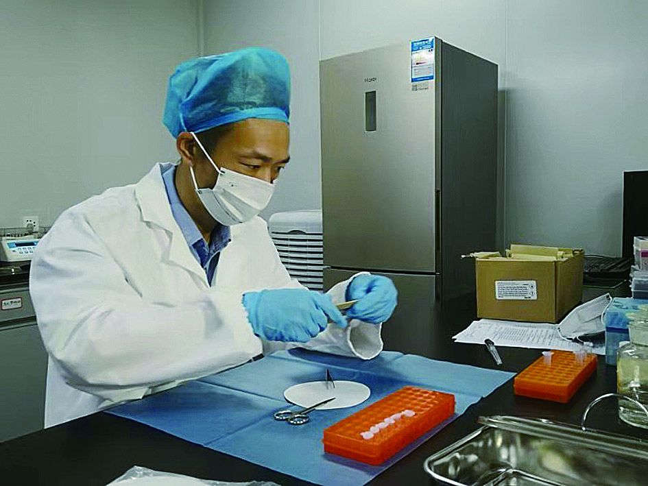 ▲刘文海在DNA实验室进行检验 受访者供图