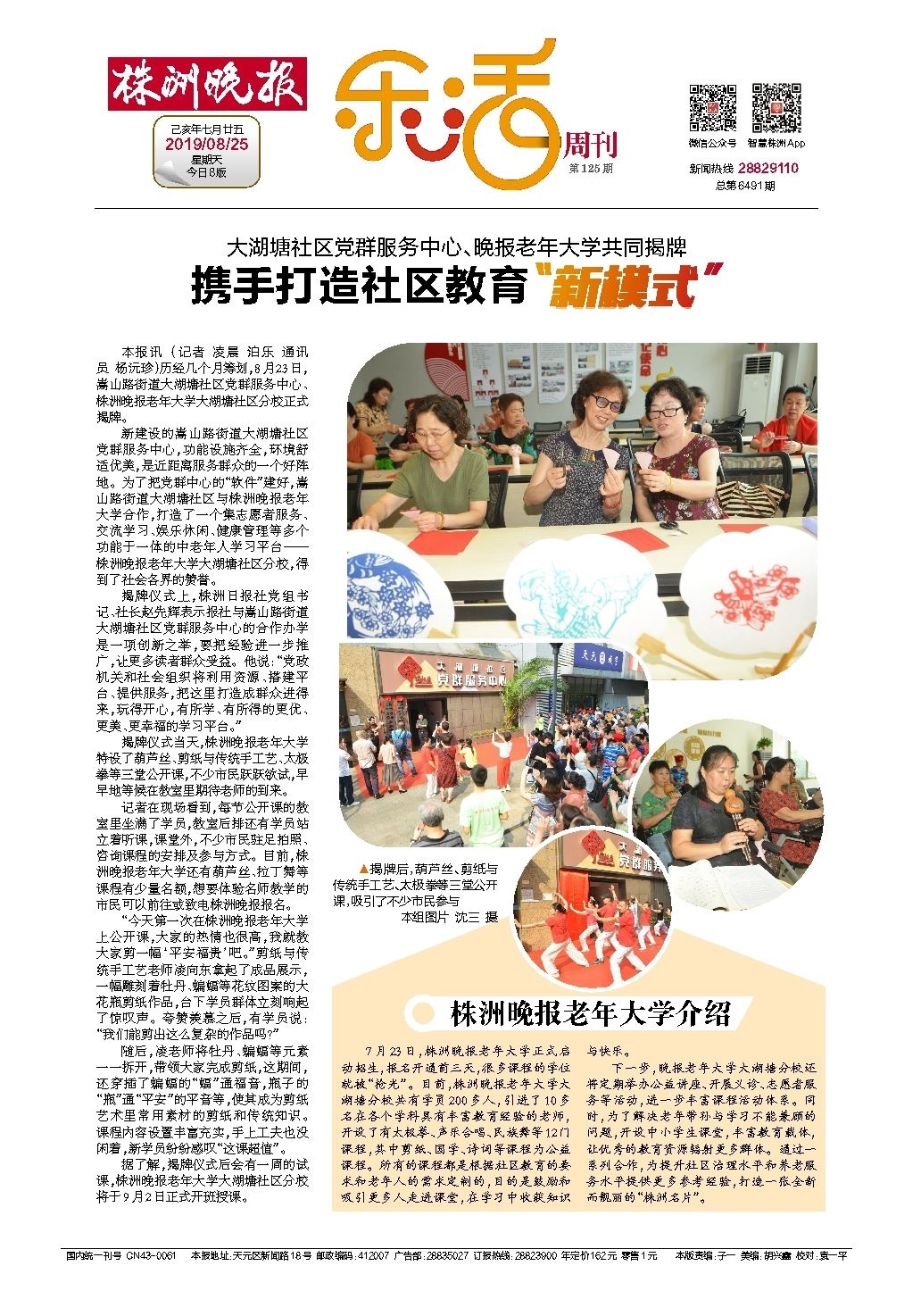 据了解,揭牌仪式后会有一周的试课,株洲晚报老年大学大湖塘社区分校将于9月2日正式开班授课。