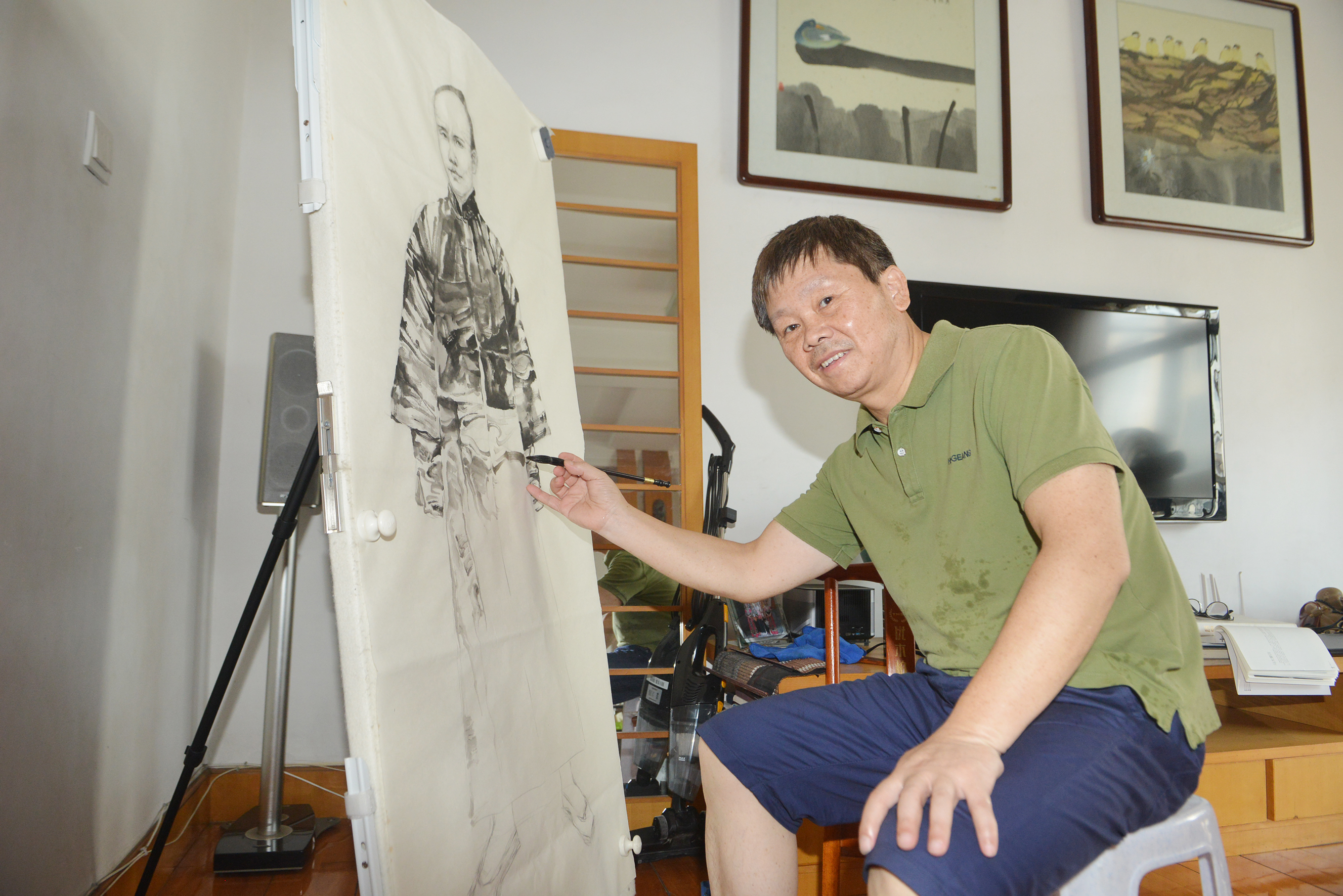 在张澄光工作室,一身绿色T恤的张澄光被人簇拥着,他手执画笔,一手插腰,一副气壮山河的样子。这位笑称自己是半路出家的画家,在即将开学的株洲晚报老年大学,为中老年学员讲授国画课程。