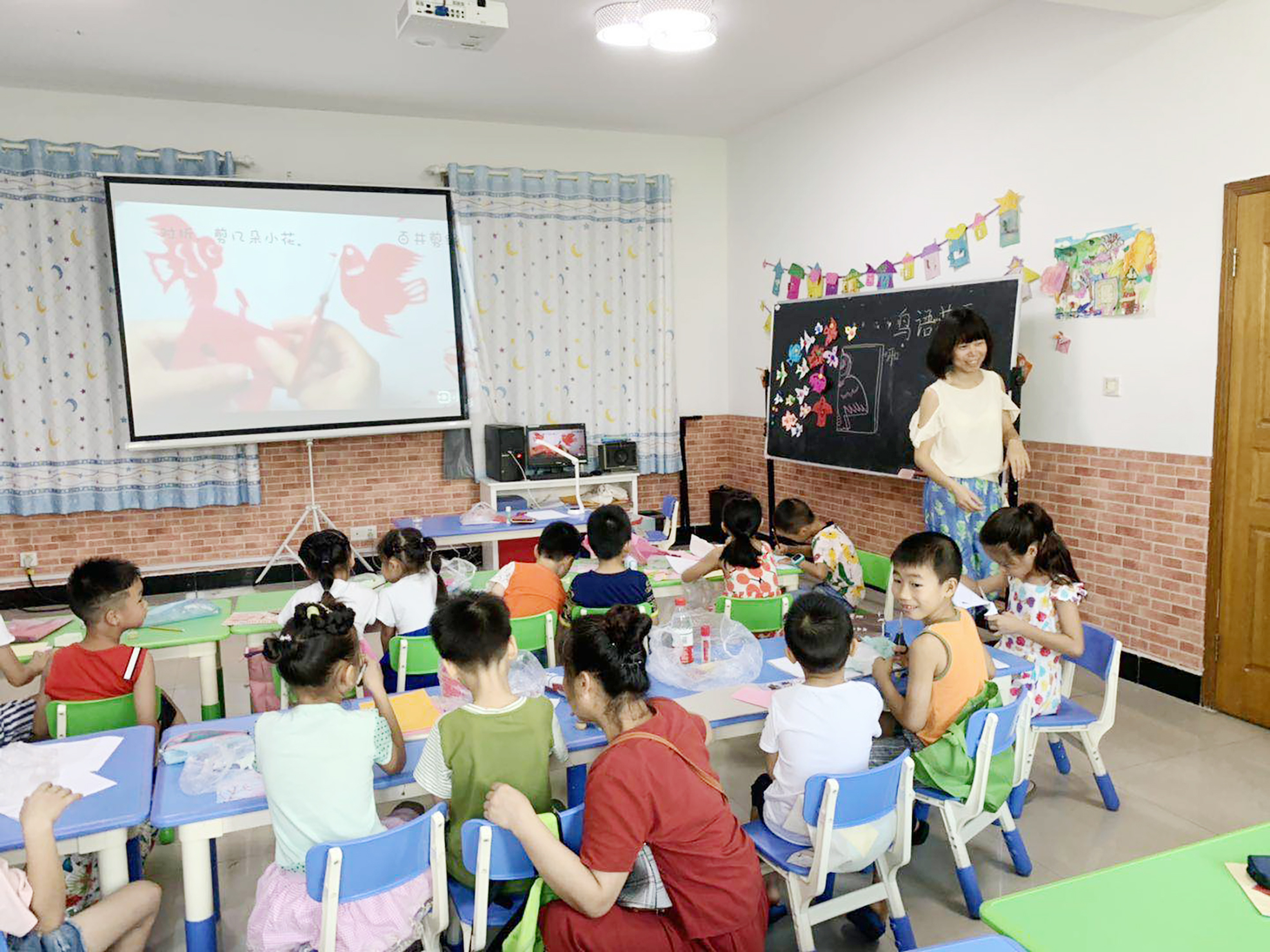 ◀“百井剪纸”公益课现场